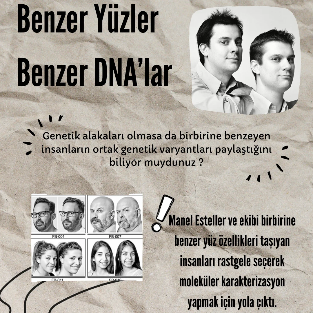 İspanya, Barselona’da bulunan Josep Carreras Lösemi Araştırma Enstitüsü’nde kıdemli yazar olan Manel Esteller ve ekibi birbirine benzer yüz özellikleri taşıyan insanları rastgele seçerek moleküler karakterizasyon yapmak için yola çıktı. [1]